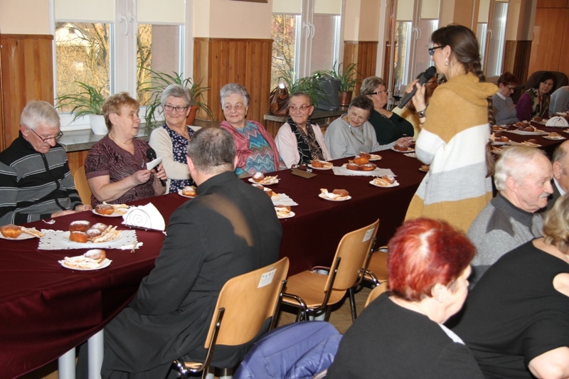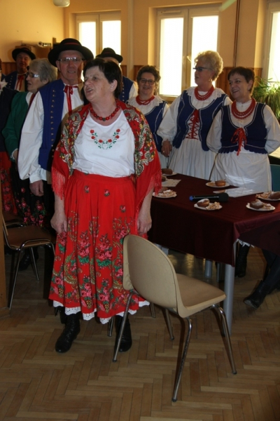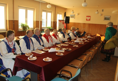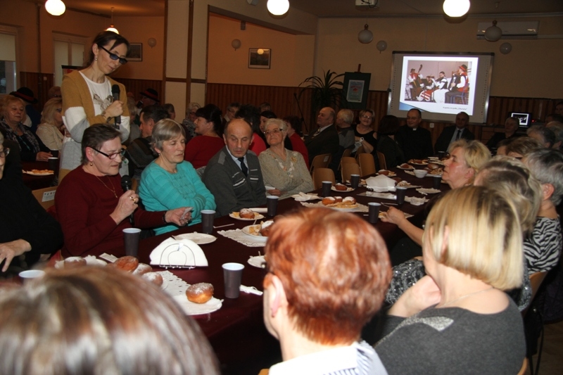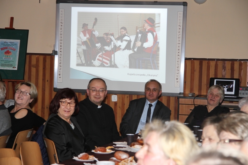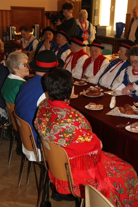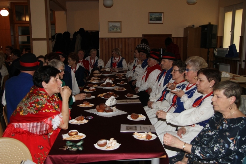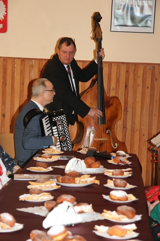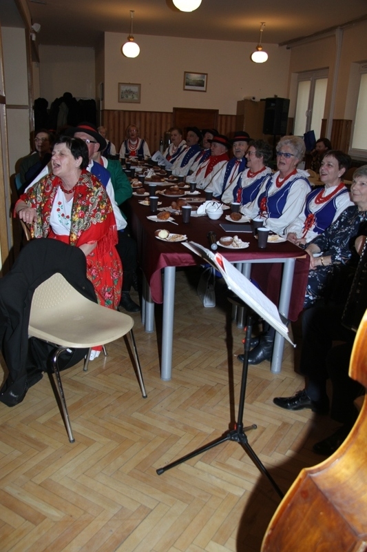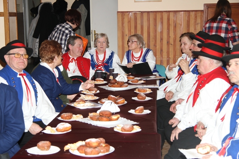 W przerwach pomiędzy wspomnieniami naszych uczestników, wraz z zespołem „OKARYNA” wspólnie śpiewaliśmy piosenki oraz przy kawie i herbacie zajadaliśmy się słodkimi pączkami i chrustem, wypieczonymi przez Panie z Koła Gospodyń i Gospodarzy Wiejskich w Ropie.