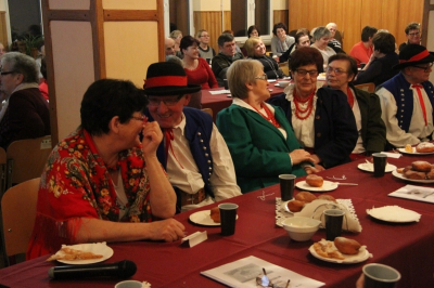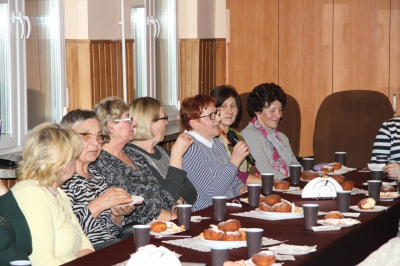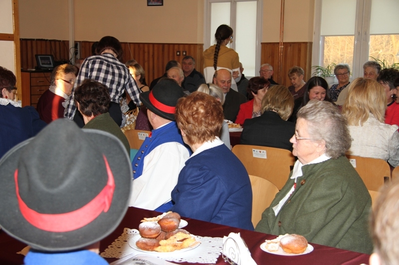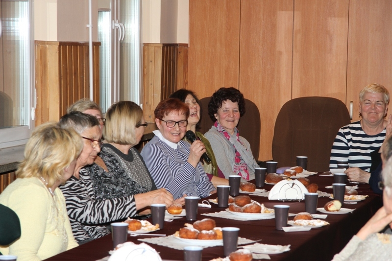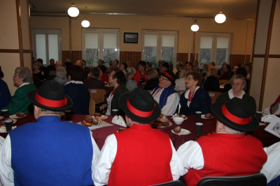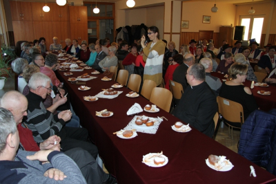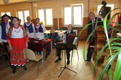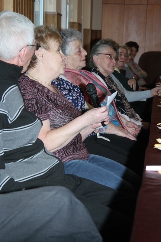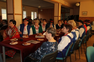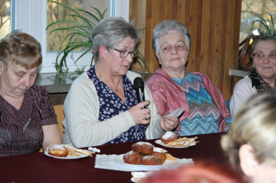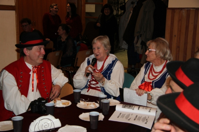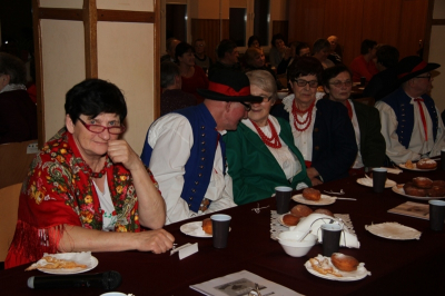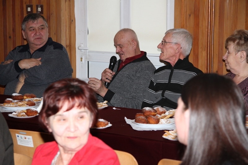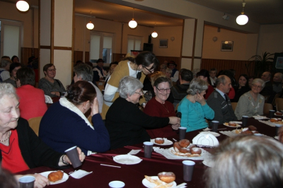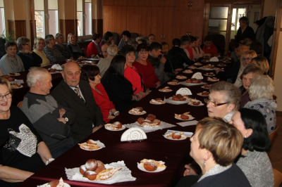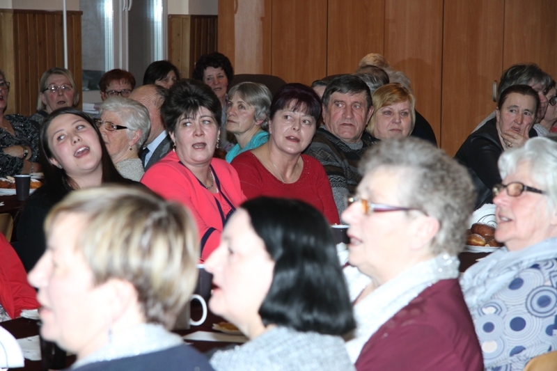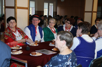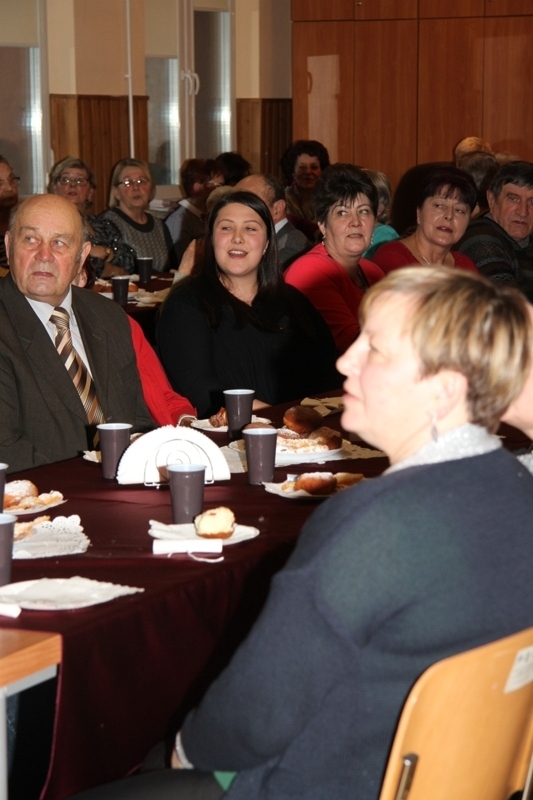 W przerwach pomiędzy wspomnieniami naszych uczestników, wraz z zespołem „OKARYNA” wspólnie śpiewaliśmy piosenki oraz przy kawie i herbacie zajadaliśmy się słodkimi pączkami i chrustem, wypieczonymi przez Panie z Koła Gospodyń i Gospodarzy Wiejskich w Ropie.