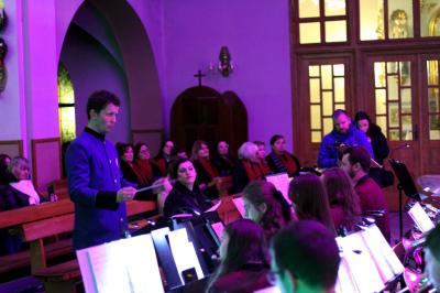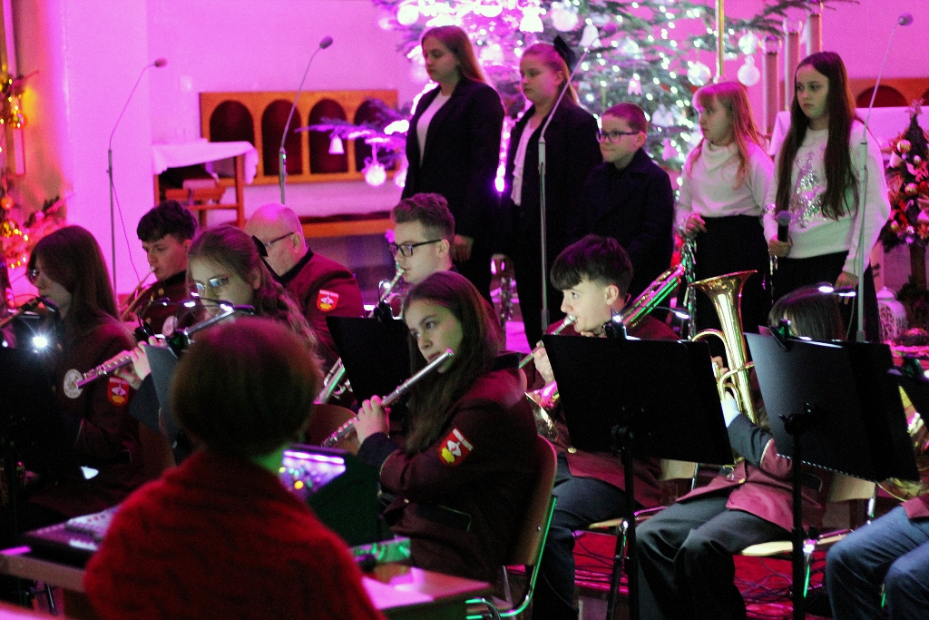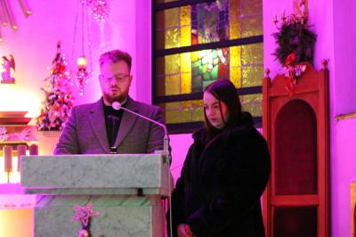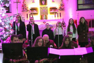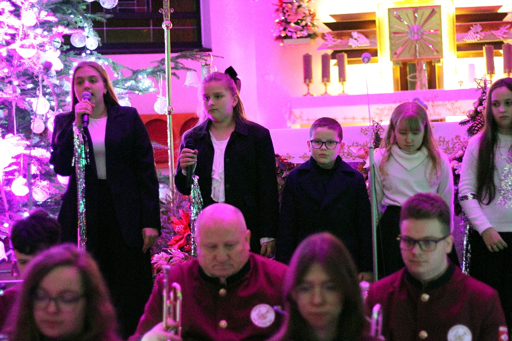 Był to wyjątkowy wieczór, pełen wzruszeń i świątecznej radości. Usłyszeliśmy najpiękniejsze kolędy i pastorałki w wykonaniu dzieci i młodzieży ze Studia Wokalnego GOK, działającego pod kierunkiem Katarzyny Burkot, Chóru Parafialnego Virtute Deo, a także solistów: Zuzanny Matuszyk, Mirosława Skrzypca, Julii Kulki oraz Krzysztofa Libera. Szczególnym akcentem był pierwszy występ podczas Koncertu Kolęd Orkiestry Dętej działającej przy GOK, pod batutą Jakuba Cetnarowskiego, który pełnił rolę maestro całego wydarzenia.