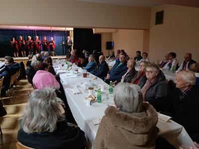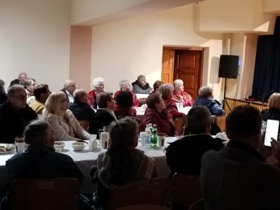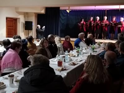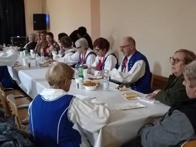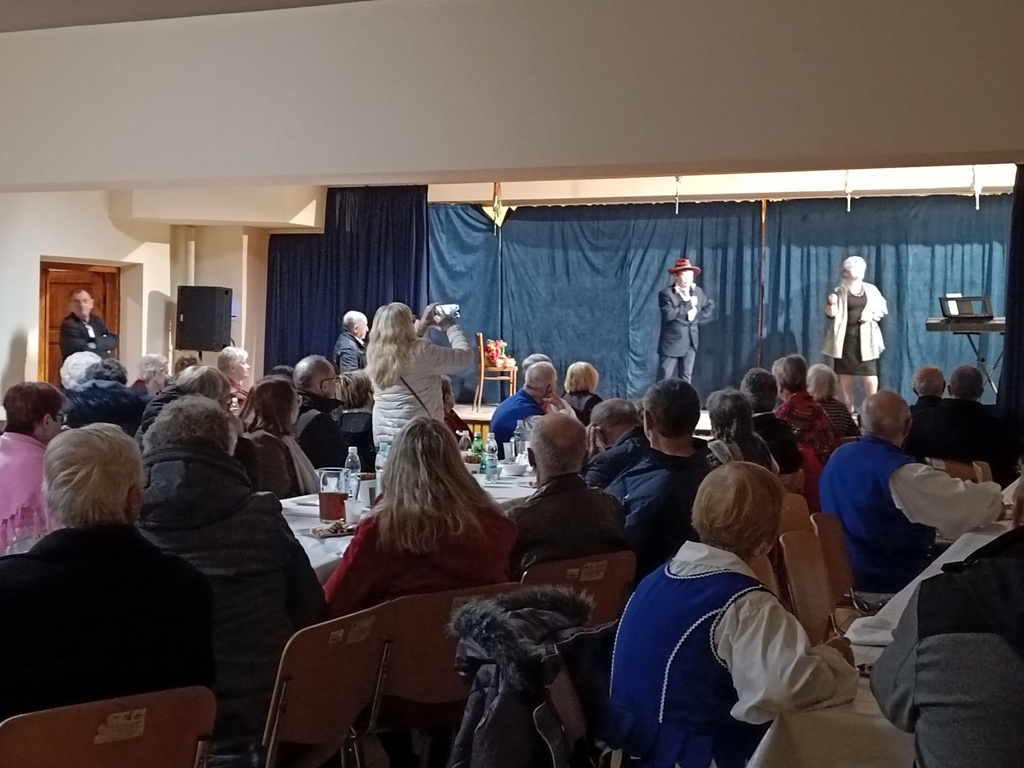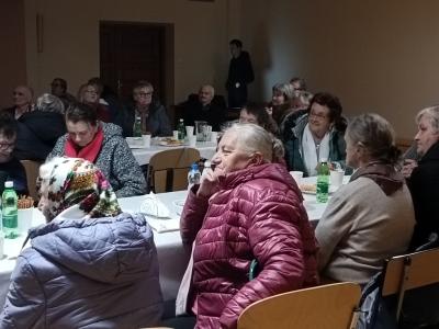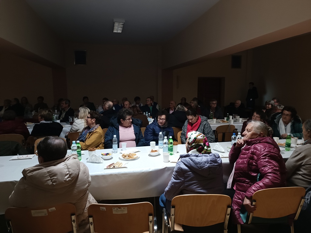 Po mszy świętej uczestnicy przenieśli się do sali teatralnej przy kościele, gdzie czekało na nich spotkanie przy domowych wypiekach i herbacie, urozmaicone występami artystycznymi. Z zaproszenia skorzystało ponad 60 osób z terenu gminy.
