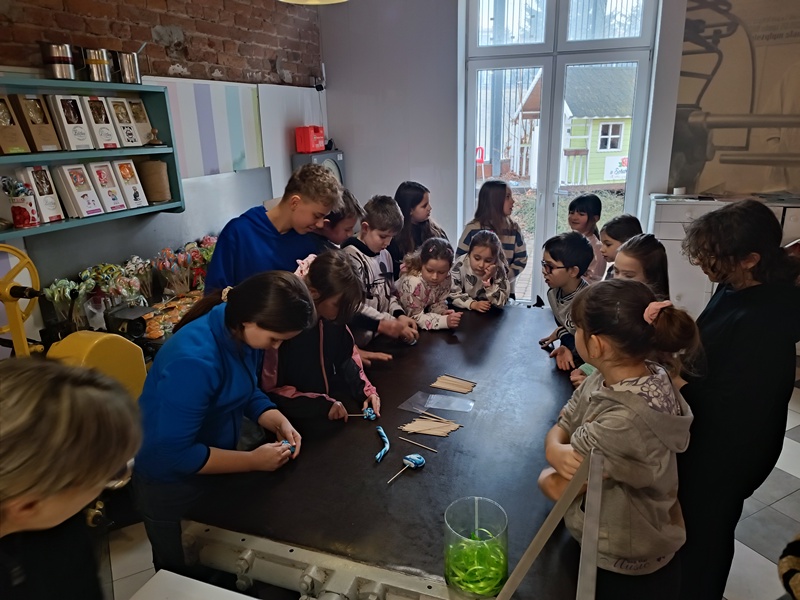 wizyta w Muzeum Lizaka wraz z warsztatami, podczas których każde dziecko wykonało własnego lizaka,