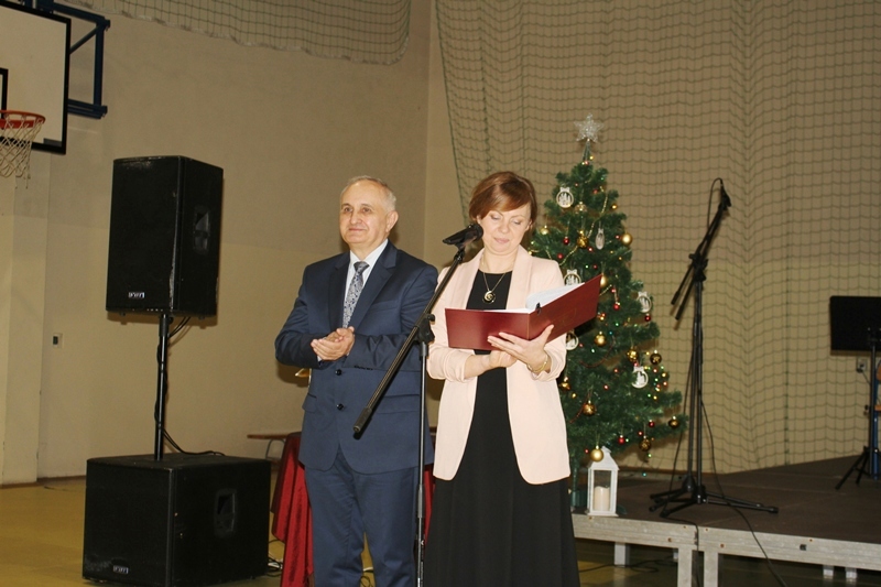 Pan Karol Górski przedstawił prezentację podsumowującą najważniejsze inwestycje i projekty zrealizowane w ubiegłym roku. Wraz z Przewodniczącym Rady Gminy Bogusławem Łukaszykiem podziękowali tym, którzy wspierają przedsięwzięcia w naszej gminie, a także tym, którzy je realizują. Złożyli życzenia wszystkim zebranym, życząc wszelkiej pomyślności w rozpoczynającym się roku. Głos zabrali także zaproszeni goście, przekazując noworoczne życzenia i słowa uznania dla działań samorządu.