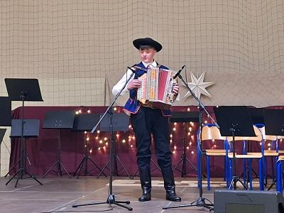 Uroczystość otworzył koncert Orkiestry Dętej działającej przy Gminnym Ośrodku Kultury w Ropie pod batutą Jakuba Cetnarowskiego. Zespół zaprezentował kolędę „Gore gwiazda Jezusowi”, utwór „Last Christmas” oraz pastorałkę „Od serca do ucha”. Orkiestra, działająca od 2022 roku, dynamicznie się rozwija i z powodzeniem reprezentuje gminę podczas wydarzeń regionalnych