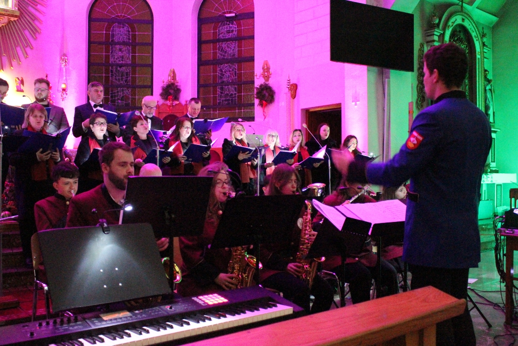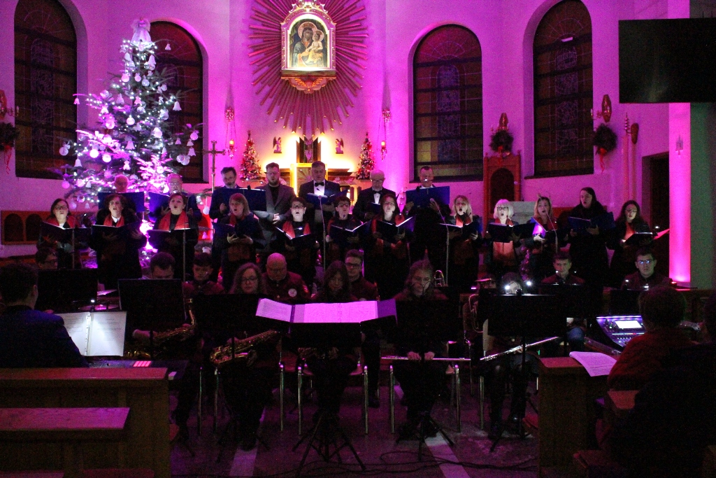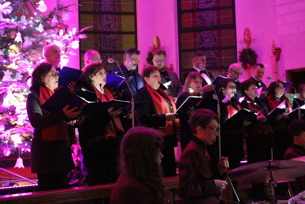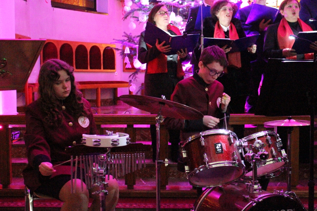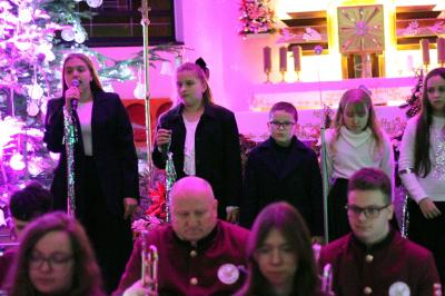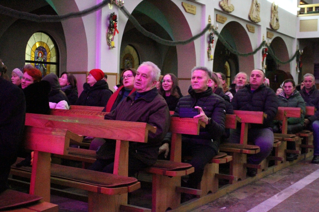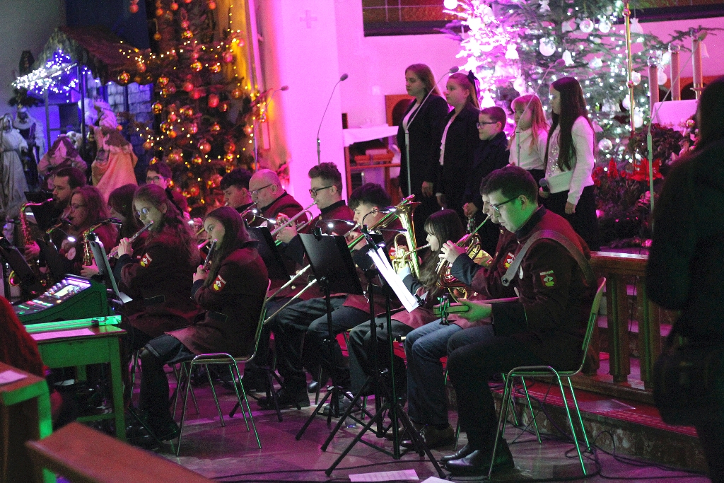 Był to wyjątkowy wieczór, pełen wzruszeń i świątecznej radości. Usłyszeliśmy najpiękniejsze kolędy i pastorałki w wykonaniu dzieci i młodzieży ze Studia Wokalnego GOK, działającego pod kierunkiem Katarzyny Burkot, Chóru Parafialnego Virtute Deo, a także solistów: Zuzanny Matuszyk, Mirosława Skrzypca, Julii Kulki oraz Krzysztofa Libera. Szczególnym akcentem był pierwszy występ podczas Koncertu Kolęd Orkiestry Dętej działającej przy GOK, pod batutą Jakuba Cetnarowskiego, który pełnił rolę maestro całego wydarzenia.